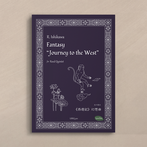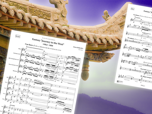 この曲は「アルスノヴァリードクインテット」の委嘱作品として2021年に作曲しました。5つの楽器&5人のプレイヤーの個性を生かしながら、ファンタジックでストーリー性のある楽曲を…とリクエスト頂き、思いついた題材が「西遊記」です。まず個性の強い三人の弟子たちを3つの楽器に…孫悟空をアルトサックスに、猪八戒をバスクラリネット、沙悟浄をファゴットに当てはめました。そして三蔵法師と、後半で戦いを挑む金角大王・銀角大王をオーボエとクラリネットが交替しながら担っています。どんな場面を描いているのかは楽譜に書き込まれていますが、YouTube動画では分かりやすく画面上にテキストを配置しましたので、併せてお楽しみいただければと思います。